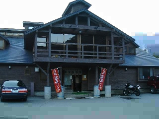 盛龍館にて (盛昇館やで!) 1日目の講習も午後4時に終了し、「お大尽コース」の参加者は民宿・盛龍館に、「ビンボーダーコース」での参加者はキャンプ場へ移動した。 宿泊設備(テントとか車とかね。)を持っていない私は、「お大尽コース」であった。 「大尽(大臣)というより姫やな。」 という声も。 4時半頃、「ビンボーダー」組も含めてみんなで温泉(おそらく八方温泉)に行くことになった。